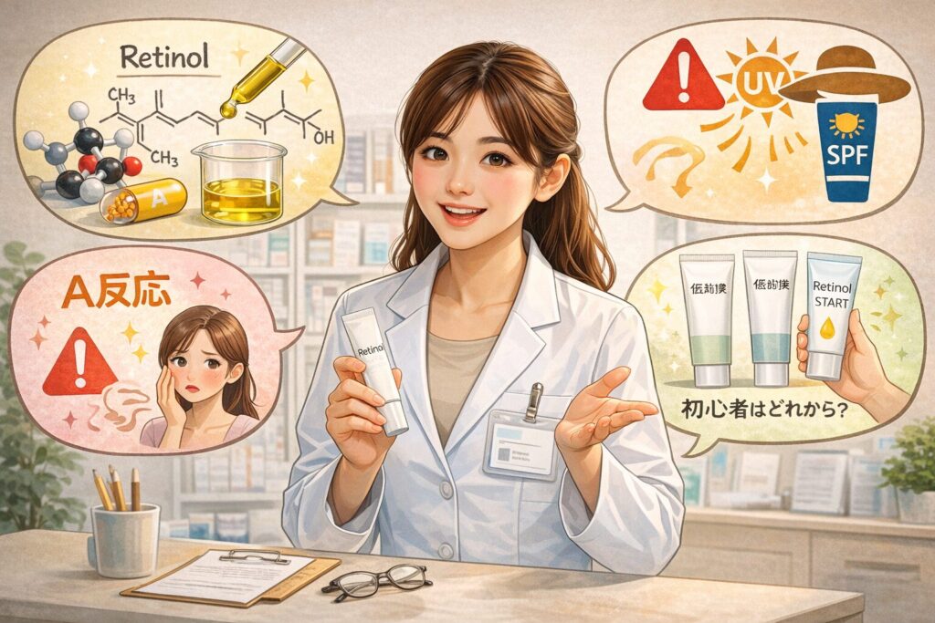 最近、スキンケアを調べていると「レチノール」という成分を目にすることが増えてきました。シワや毛穴にいいと聞くと気になる一方で、「刺激が強いって本当?」「皮むけしそうで怖い…」と、不安に感じている方も多いのではないでしょうか。 レチノールは... -